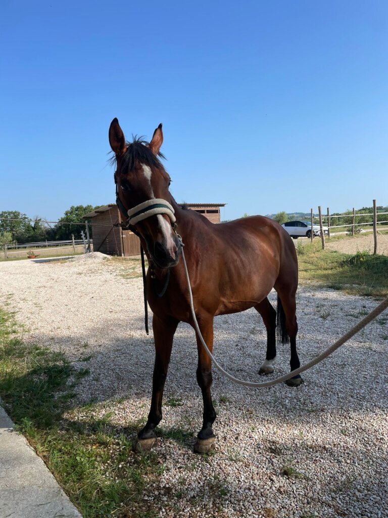 *Ferrato agli anteriori*, tranquillo ma da capire e rispettare. È un cavallo buono, collaborativo, sensibile e perfetto per chi vuole rafforzare fiducia e legame.