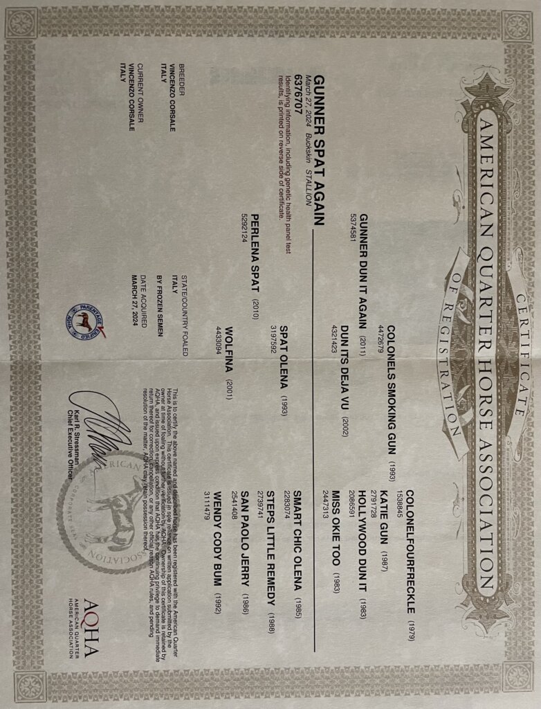 Vendo puledro quarter horse futurity prospect da reining di 15 mesi, figlio di Gunner Dun it Again x Perlena Spat (figlia diretta di Spat O Lena, PE 10k).6 pannelli negativi.Nomination IRHBA, NRHA, NRHA Germany. Solo per intenditori.No perditempo.Prezzo su richiesta.