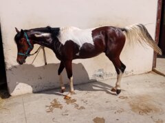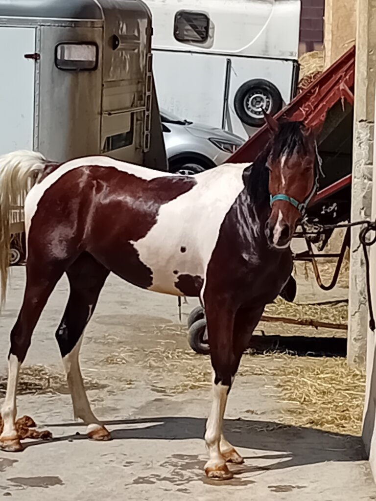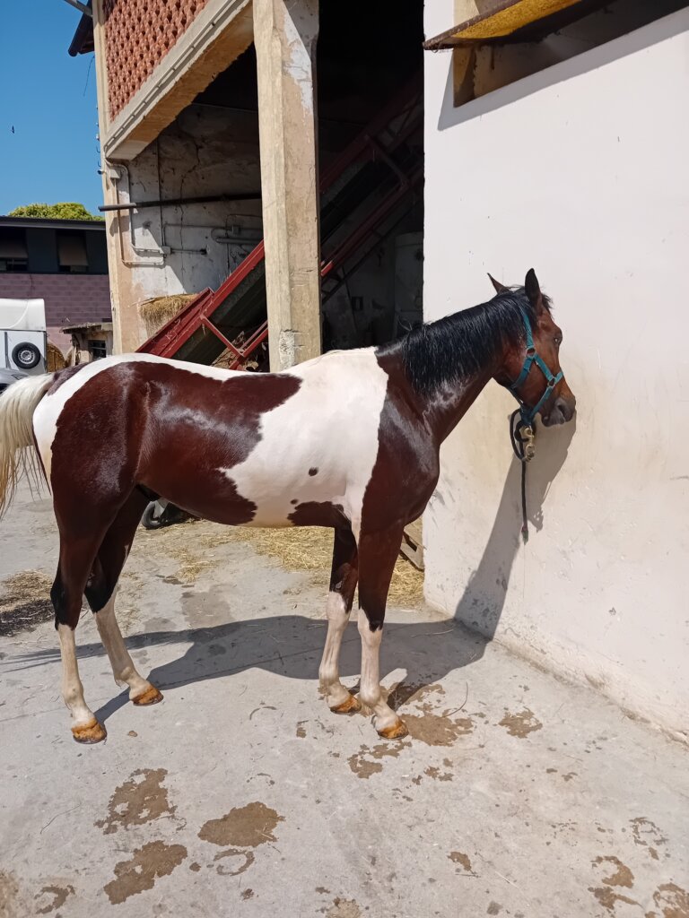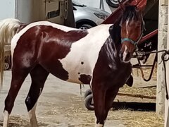 Stupendo castrone Quarab certificato con ottimi documenti… (padre paint / madre araba), 4 anni, tobiano, fisico ben strutturato, montato all’americana e domato alle tre andature, con tanta energia giovane ma di facile gestione da terra, tranquillo con altri cavalli, sta sia in box che in paddock, senza vizi, sano e disponibile a qualsiasi visita veterinaria e prova! No perditempo…