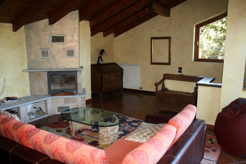Al primo piano abbiamo un grande salone con camino dalla quale si accede al balcone.
